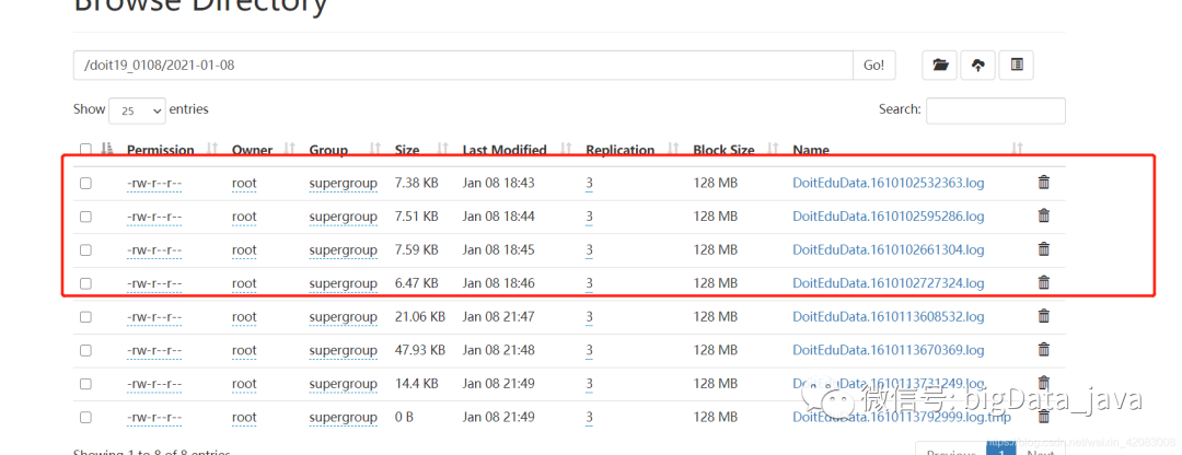 可以看到,成功采集并在hdfs上分好了文件夹,和存入了相应的数据