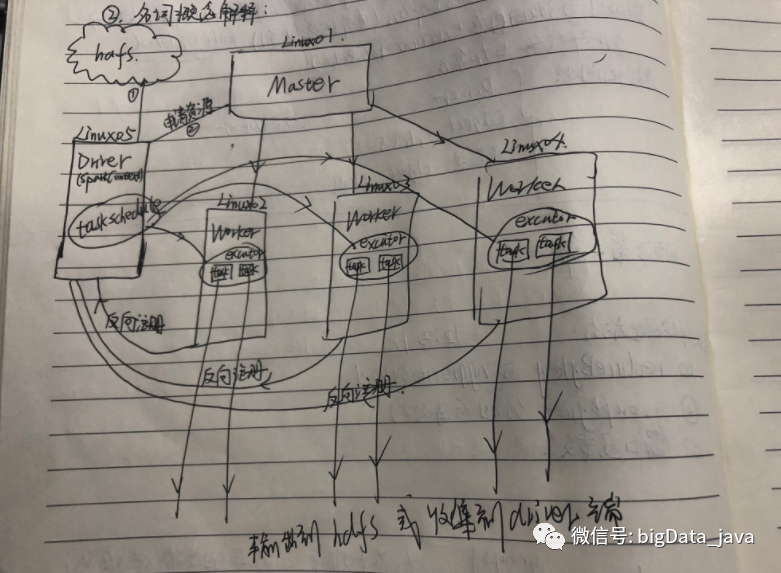 (6)任务执行完成之后,输出到hdfs端,或收集到driver端进行再次操作统计