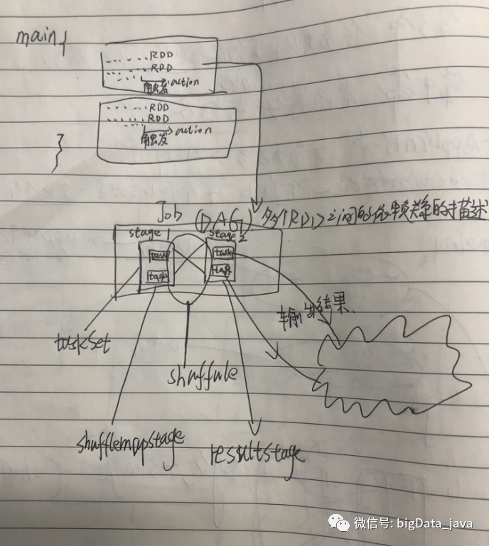 5)stage可以分为两种,ShuffleMapStage和ResultStage;ShuffleMapStage对应的TaskSet里面自然就是ShuffleMapTask,ResultStage对应的TaskSet里面自然就是ResultTask