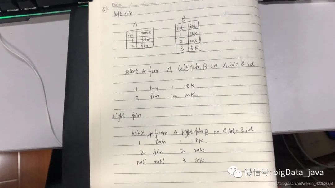 right join :select * from A right B on A.id=B.id 以右表B为主进行关联,A表没有的字段为null