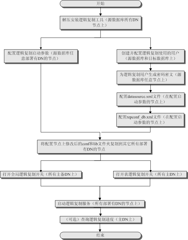 - 需要为逻辑复制服务创建数据库用户、并在该用户下面创建复制过程中需要使用的逻辑复制进度表、并授予该用户所需权限。逻辑复制用户所需的最小权限请参见表1。此逻辑复制用户仅用于查询需要复制数据的表的元数据信息,并记录逻辑复制进度,尤其要注意的是:此用户与repconf_db.xml文件中配置的需要复制数据的表中的用户是没有关系的。