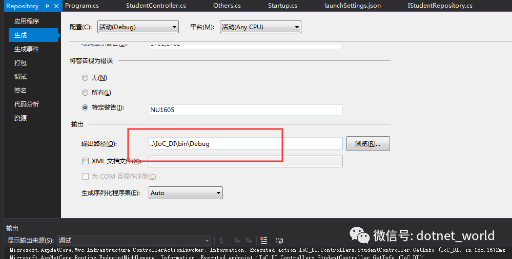 这个时候,我们还需要将Repository层的dll输出目录更改一下: