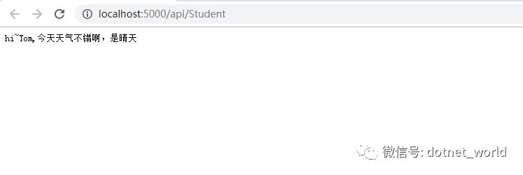 浏览器中输入:localhost:5000/api/Student,测试如下图: