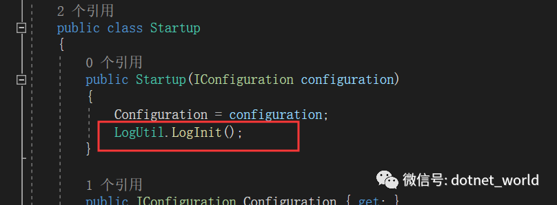 在startup构造函数当中,初始化日志仓库的LogInit(记得添加引用)