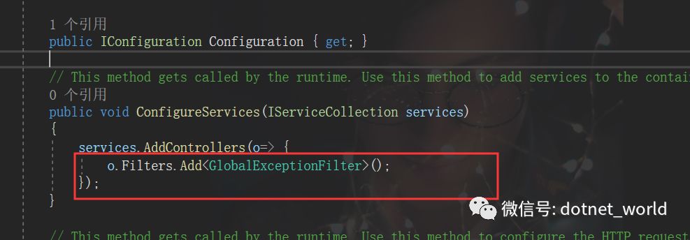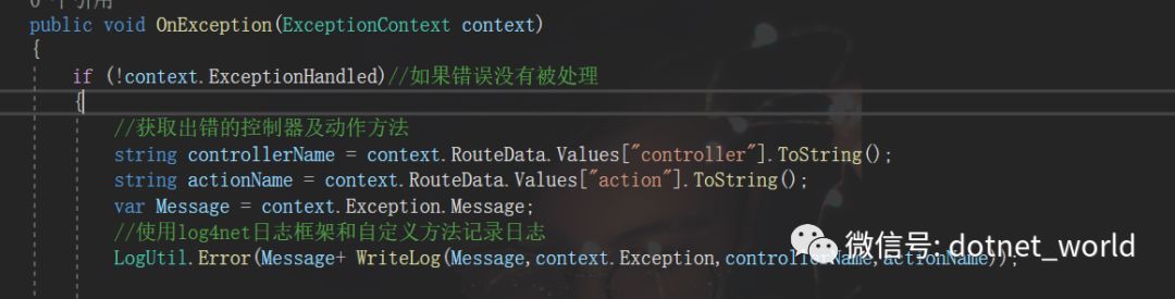 自定义异常过滤器类:GlobalExceptionFilter,继承自IExceptionFilter,并实现接口:OnException