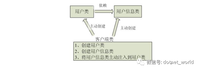 传统程序设计当中,用户类依赖于用户信息类,都是主动去创建相关对象再组合起来,客户端向服务器发送请求之后经历了这三个过程:用户类的创建、用户信息类的创建,将用户信息类主动注入到用户类。