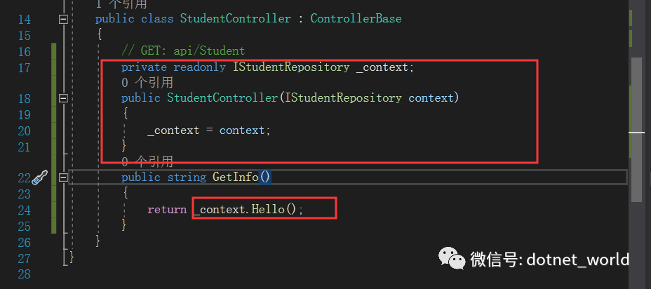 下面更改控制器实例方式,改为构造函注入。