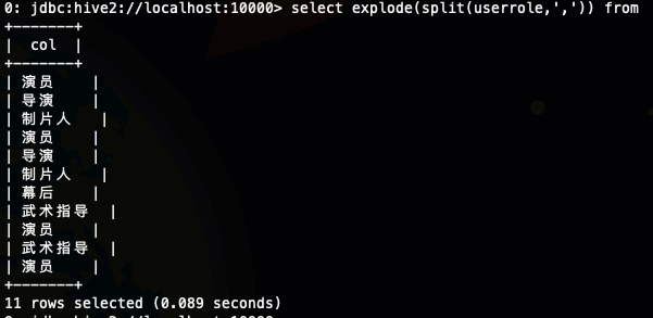 select explode(split(userrole,',')) from ods.ods_actor_data;