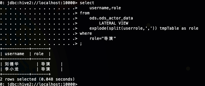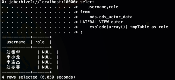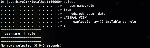 select username,explode(split(userrole,',')) from ods.ods_actor_data;