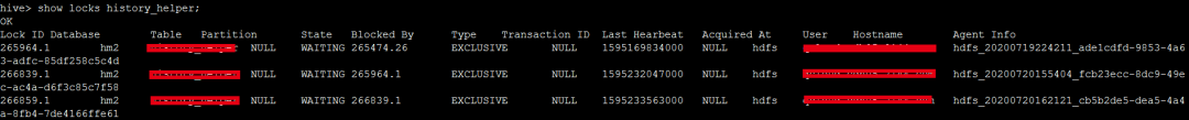 select * from HIVE_LOCKS where HL_DB=?;