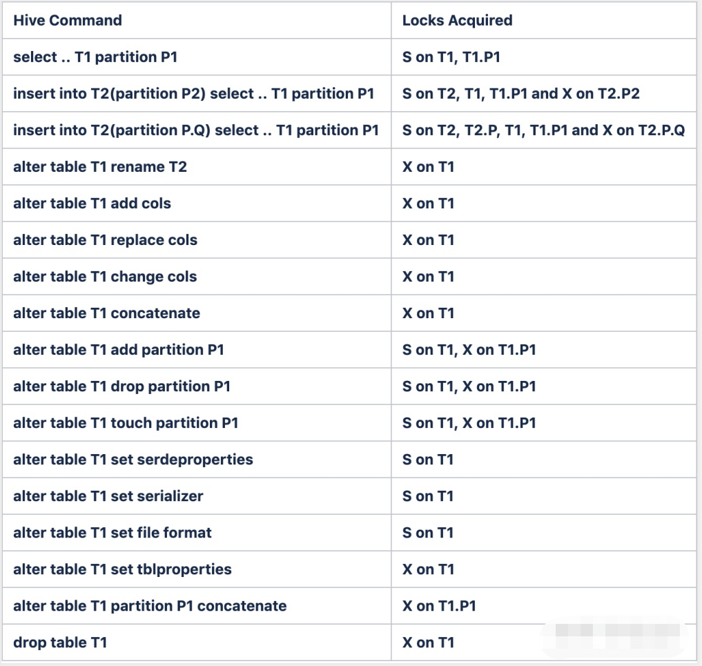 hive存在两种锁,共享锁Shared (S)