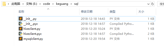 简单介绍一下:可以看到,E\code\keguang\sql就是包名,使用时导入对应的.py文件即可。