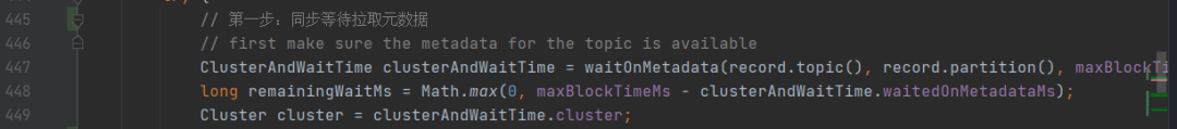点进去可以看到主线程唤醒了 Sender 线程去拉取元数据