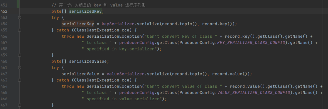 2、把消息的 key(如果设置了的话) 和 value 序列化;