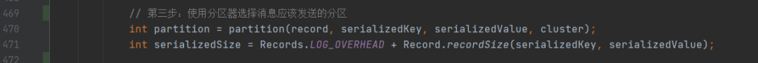 3、使用分区器,计算需要把这个消息发送到哪个分区上;