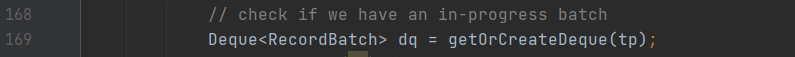 Deque<RecordBatch> dq = getOrCreateDeque(tp);