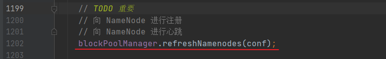 这个方法表面看起来是刷新 NameNode,实际上里面做了两件事情,把自己注册到 NameNode 上,另外一件事情是向 NameNode 定时发送心跳。