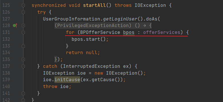 所以遍历 offerService 其实就是在遍历整个集群每个联邦的每个 NameNode 节点。