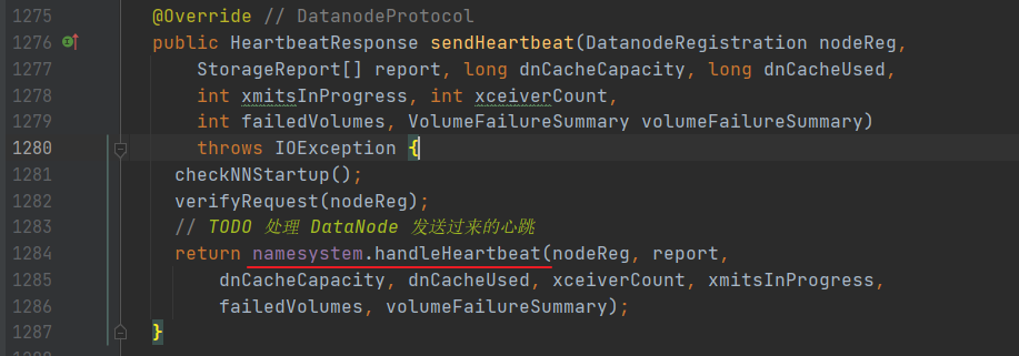 本次通过浏览 DataNode 代码了,知道了其实 DataNode 的心跳,就是DataNode 在后台启动了线程,定时向整个集群所有的 NameNode 发送心跳信息,NameNode 会在心跳响应信息中告诉 DataNode 本次该做些什么事情。