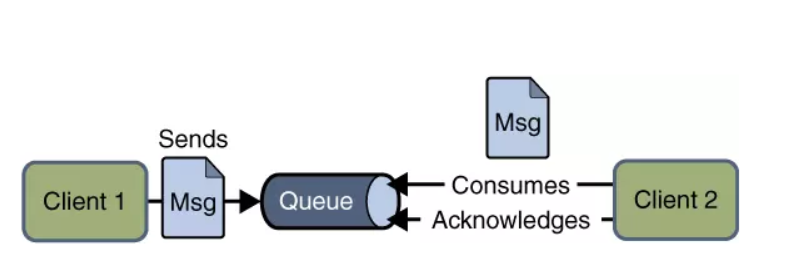 使用队列(Queue)作为消息通信载体:满足生产者与消费者模式,一条消息只能被一个消费者使用,未被消费的消息在队列中保留直到被消费或超时。