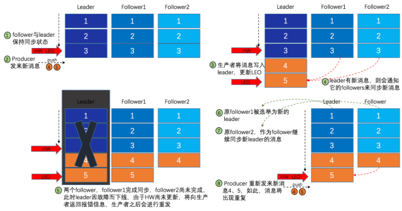 以上流程将重复,直到消费者停止请求。消费者可以随时回退/跳到所需的主题偏移量,并阅读所有后续消息