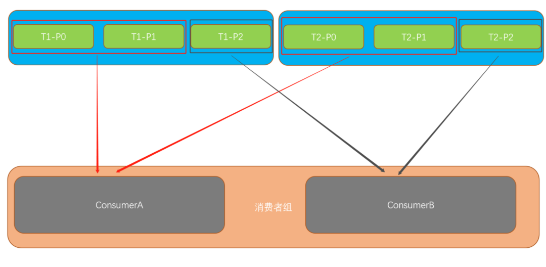 Consumer Group(消费者集群):consumer group是kafka提供的可扩展且具有容错性的消费者机制。组内可以有多个消费者或消费者实例,它们共享一个公共的group ID。组内的所有消费者协调在一起来共享订阅主题的所有分区。