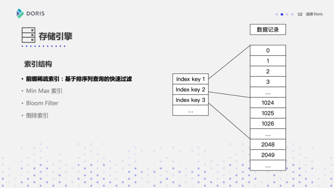 智能索引包括前缀稀疏索引和MinMax索引两种。