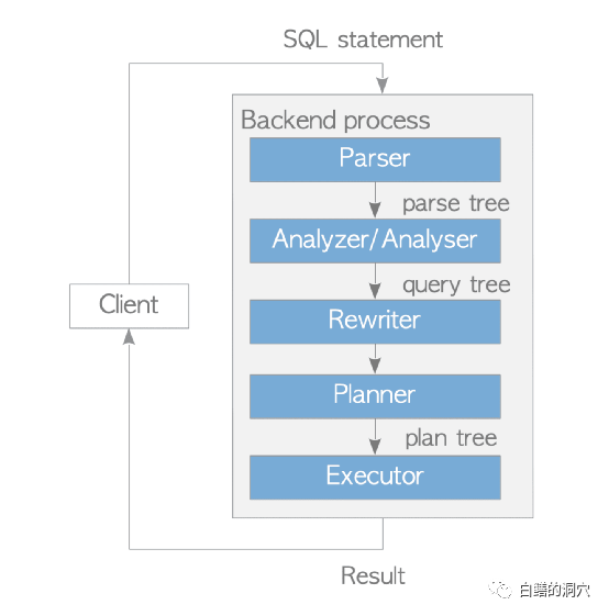 在一个高并发的系统中,SQL执行过程需要对SQL进行编译,这个过程无论哪种数据库都是必须有的。大体上分为语法语义解析、SQL REWRITE优化、执行计划生成、执行计划选择、执行等过程。在PostgreSQL中,可以用下面这个图来表示。