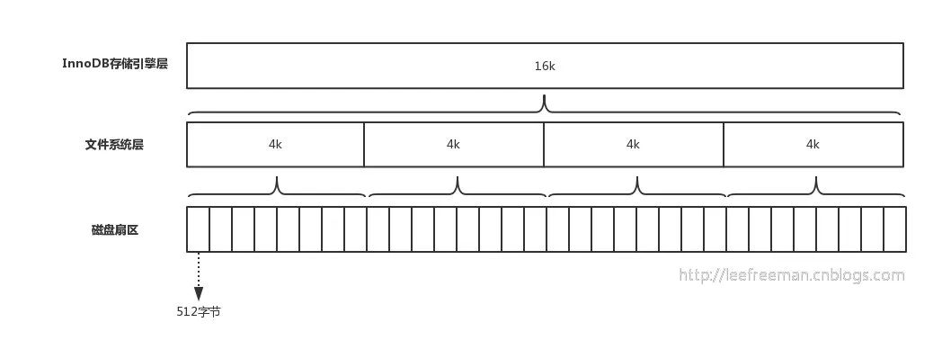 磁盘扇区、文件系统、InnoDB存储引擎都有各自的最小存储单元。
