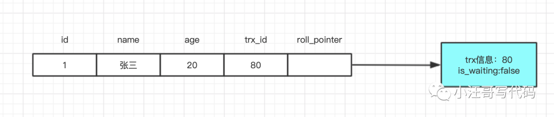 当一个事务想对这条记录做改动时,首先会看看内存中有没有与这条记录关联的锁结构,当没有的时候就会在内存中生成一个锁结构与之关联。比方说事务80要对这条记录做改动,就需要生成一个锁结构与之关联:
