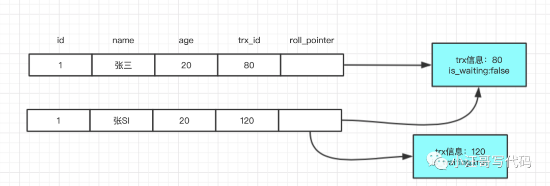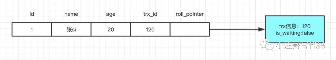 事物120 也要对这条记录进行修改,发现已经有一个锁结构了,那么自己也会生成一个锁结构。只不过is_waiting=true