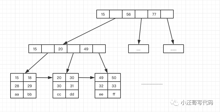 主键索引:完整的数据在叶子节点上,非叶子节点只有主键和页号等相关信息