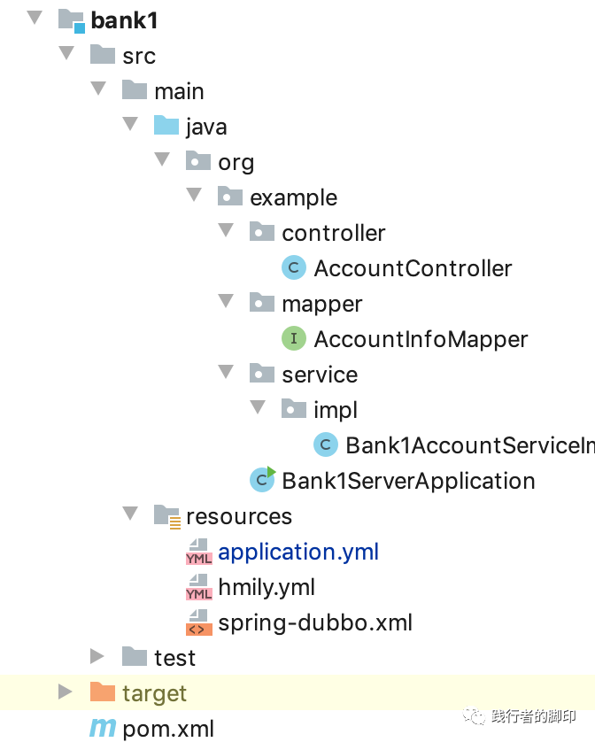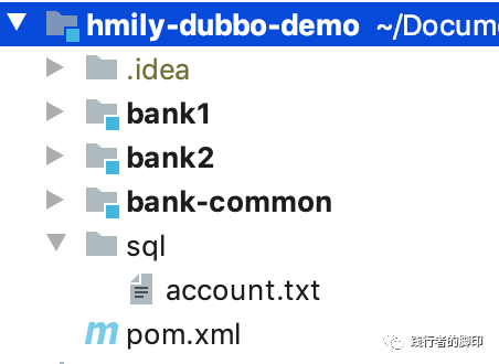 创建一个聚合工程hmily-dubbo-demo bank1和bank2两个子服务,bank-common作为子工程,存放基础公共类