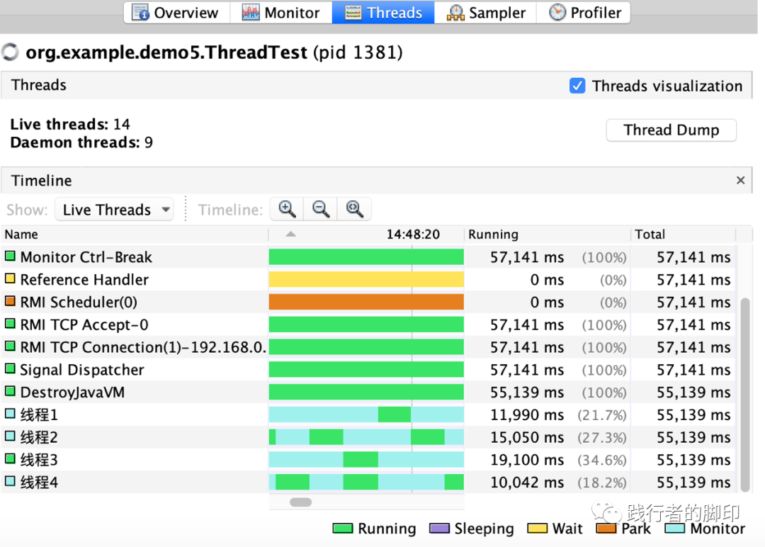 package org.example.demo5;public class ThreadTest {private static final int num = 1000 * 1000;public static void main(String[] args) throws InterruptedException {//因为Visual VM找到java进程需要时间,所以这里让主线程先睡一会儿,//等待Visual VM找到进程再开始启动各子进程打印Thread.sleep(50000);new Thread(()->{for (int i = 0; i < num; i++) {System.out.println(i);}},"线程1").start();new Thread(()->{for (int i = 0; i < num; i++) {System.out.println(i);}},"线程2").start();new Thread(()->{for (int i = 0; i < num; i++) {System.out.println(i);}},"线程3").start();new Thread(()->{for (int i = 0; i < num; i++) {System.out.println(i);}},"线程4").start();}}