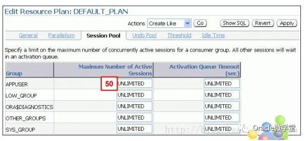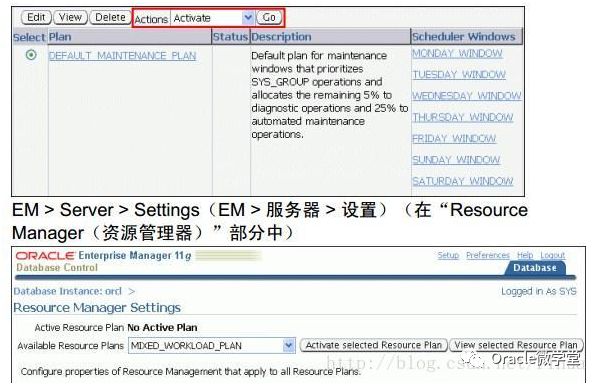 使用Oracle EnterpriseManager 可以方便地配置资源计划的活动会话池设置。