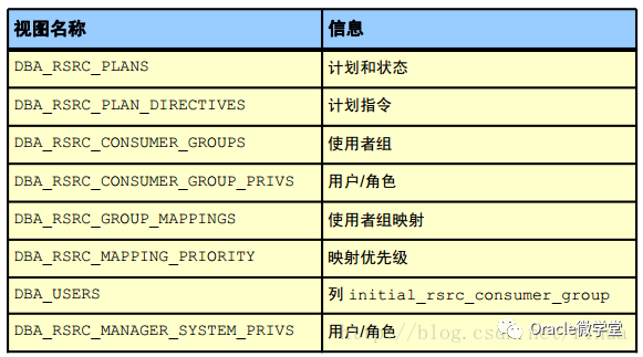 • V$RSRC_PLAN:显示活动资源计划的视图