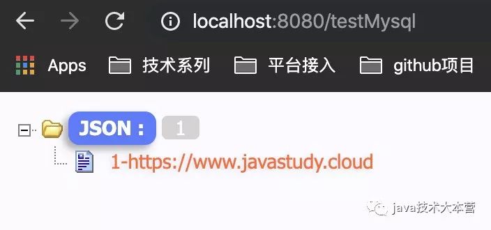 /*** @Author https://www.javastudy.cloud* @CreateTime 2019/11/3**/@RestControllerpublic class MysqlController {/*** 引入mybatis依赖就是为了方便注入这个对象* 如不引的话,虽然也可以手工设置,但和springboot的关系就不大了*/@AutowiredDataSource dataSource;@RequestMapping("testMysql")public String testMysql() {try {//获取连接,注意要关闭,这里没有关Connection connection = dataSource.getConnection();// 从连接创建statement,注意要关闭,这里没有关Statement statement = connection.createStatement();// 用statement执行sql并获取 ResultSetResultSet resultSet = statement.executeQuery("select * from test");//遍历result获取结果集List<String> list = new ArrayList<>();while (resultSet.next()) {String id = resultSet.getString("id");String name = resultSet.getString("name");list.add(id+"-"+name);}//先转成json字符串再返回return JSON.toJSONString(list);} catch (SQLException e) {e.printStackTrace();}return null;}}