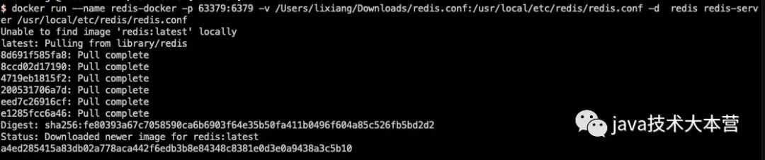 docker run --name redis-docker -p 63379:6379 -v Users/javastudy/Downloads/redis.conf:/usr/local/etc/redis/redis.conf -d redis redis-server usr/local/etc/redis/redis.conf