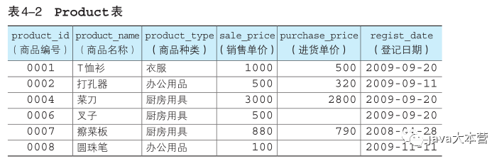 将更新对象的列和更新后的值都记述在 SET 子句中。我们还是以Product (商品)表为例,由于之前我们删除了“销售单价大于等于4000 日元”的 2 行数据,现在该表中只剩下了 6 行数据了(表 4-2)。