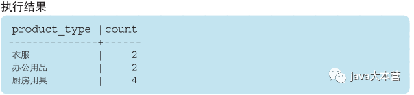 代码清单3-34 ORDER BY 子句中也可以使用聚合函数SELECT product_type, COUNT(*)FROM ProductGROUP BY product_typeORDER BY COUNT(*);