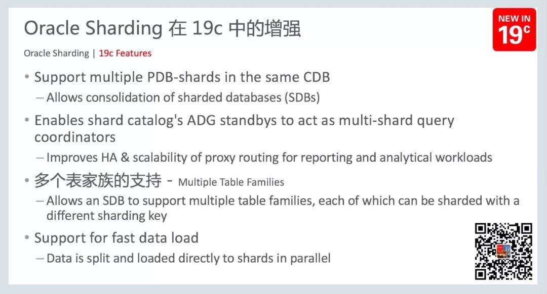 在12.2,在一个SDB中只支持一个表家族,在 19c 中,SDB 中允许存在多个表家族,每个通过不同的 Sharding Key进行分片,这是 Sharding 特性的一个重要增强,有了 Multiple Table Families 的支持,Sharding 才可能找到更多的应用场景。