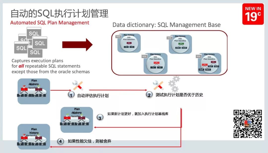 在 19c 中,数据库缺省的就会启用对于所有可重用SQL的执行计划捕获(当然SYS系统Schema的SQL除外),然后进行自动的执行计划评估,评估可以针对AWR中的TOP SQL、SGA、STS中的SQL进行。