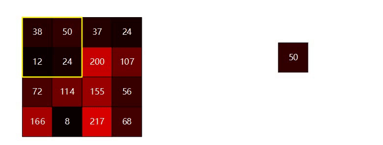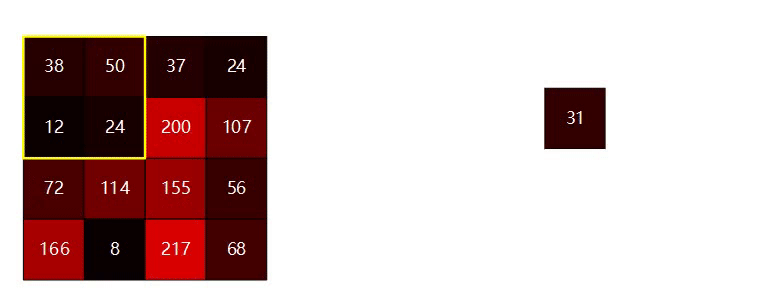 平均池化则是取区域内所有像素点的平均值,如下图所示