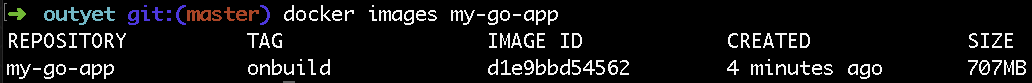 诸如Go,C,C ++,Rust,Haskell等编译型语言可以创建在没有许多外部依赖性的情况下运行的二进制文件。 这意味着你可以提前构建二进制文件并将其投入生产,而无需把创建二进制文件(如编译器)放进去。借助Docker对多阶段构建的支持,您可以轻松地打包二进制文件和最少量的脚手架。 让我们学习一下怎么做。让我们采用Go应用程序并使用此模式对其进行容器化。 首先,让我们使用golang:onbuild镜像作为基础。 和以前一样,Dockerfile只有两行,但你再次付出磁盘大小超过700MB的代价!dockerfile