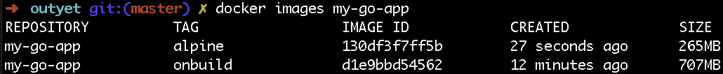 下一步是使用更小的基础镜像,也就是golang:alpine镜像。 到目前为止,这与我们针对解释型语言所遵循的过程相同。同样,使用Alpine基础镜像创建Dockerfile有点复杂,因为您必须运行一些执行onbuild镜像相关的命令。dockerfile
