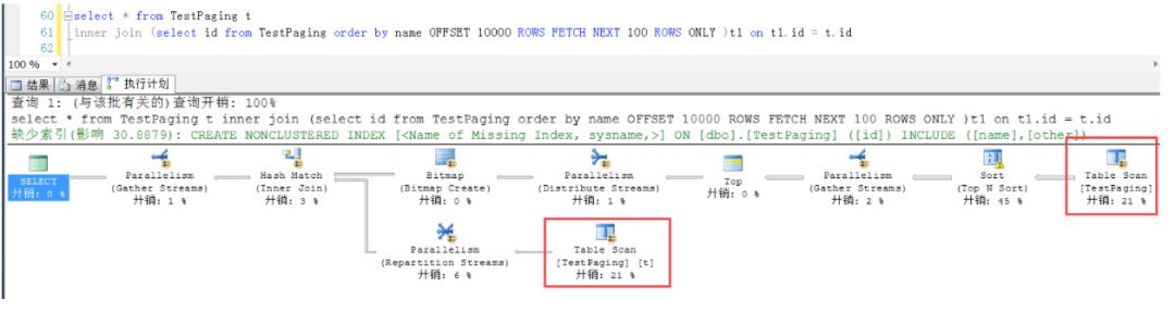 重现经典分页“优化”,当没有筛选条件,排序列为聚集索引的时候,并不会有所改善。