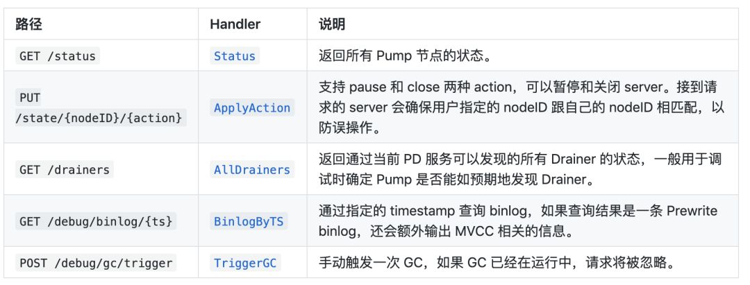 nodeID在 PD 发现的 Pump 节点中找到指定的节点,然后调用上一小节中提到的接口