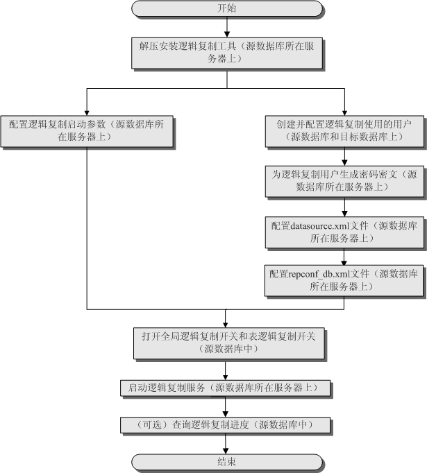- 需要为逻辑复制服务创建数据库用户、并在该用户下面创建复制过程中需要使用的逻辑复制进度表、并授予该用户所需权限。逻辑复制用户所需的最小权限请参见表1。此逻辑复制用户仅用于查询需要复制数据的表的元数据信息,并记录逻辑复制进度,尤其要注意的是:此用户与repconf_db.xml文件中配置的需要复制数据的表中的用户是没有关系的。