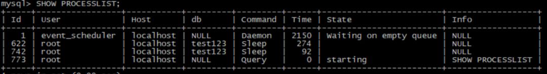 1. SHOW PROCESSLIST; —当前MySQL数据库的运行的所有线程