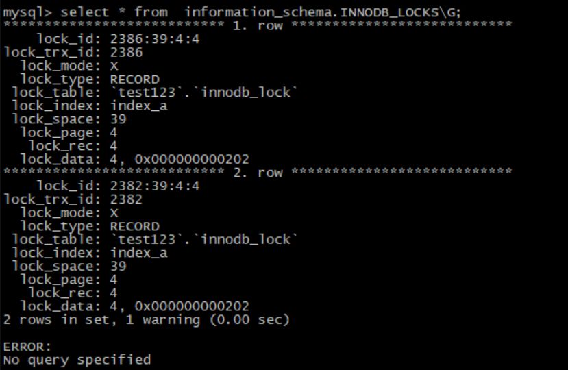 3. INNODB_LOCKS; — 当前出现的锁